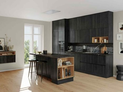 This style is often associated with contemporary and minimalist aesthetics, providing a clean and uncluttered appearance to the kitchen space.