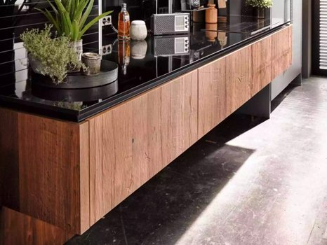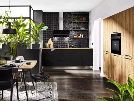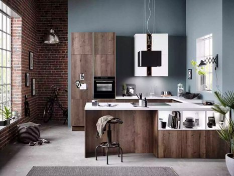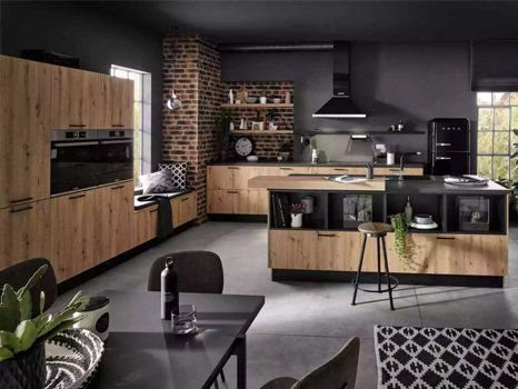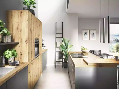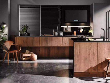 A wooden style kitchen emphasizes the use of wood throughout its design, creating a warm, natural, and inviting atmosphere.